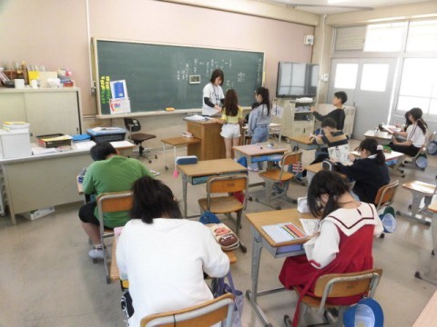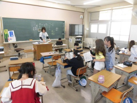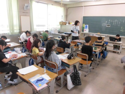 自分の名前や好きな勉強,将来の夢を自己紹介カードに書いていました。