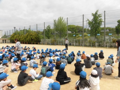 今日は,地震が起こってから火災が発生したという内容で,避難訓練を行いました。
