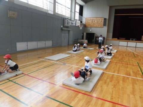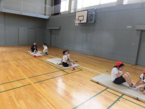 ルールをしっかり聞いてから,上体起こしにチャレンジしていました。