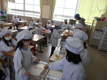 今日は新しい学年になって初めての給食でした!みんなで協力して給食の準備を進めていました。