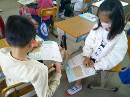 4月13日 2年2組 算数 公開日 2023/04/13 更新日 2023/04/13 2年 資料の整理の仕方の学習です。あめを使ってとても楽しそうです。お隣と自分の考えを伝えあっています。大事な力ですね。