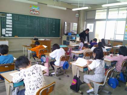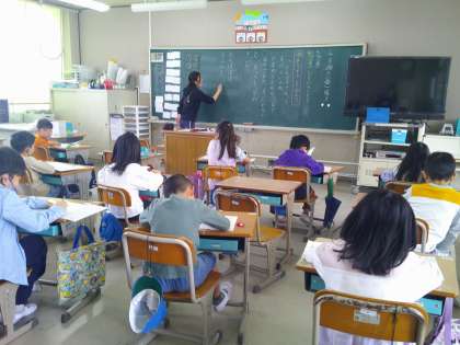 教科書の表紙をめくったところにある詩を書いたり、音読したりしていました。「詩をたのしもう」というめあての通り、子どもたちはとても楽しそうに学習していました。