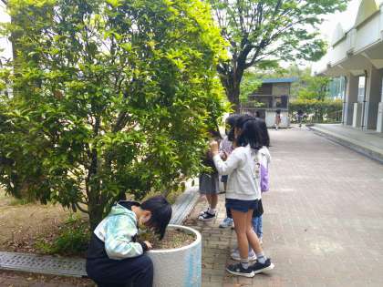 4月18日 3年1組 理科 公開日 2023/04/18 更新日 2023/04/18 3年 「○○○のたまご」の観察をしていました。その答えは・・・「アゲハのたまご」でした。子どもたちは、「どんなの?」「大きさは?」など、興味深々。ルーペを使って、色んな所を探して楽しそうでした。