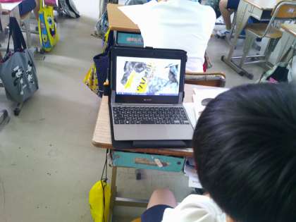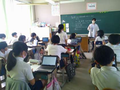 環境問題を各自パソコンで調べていました。「魚が網に引っかかってる〜。」などびっくりの反応をしながら、様々な状況を目の当たりにして自分たちなりに考えていました。