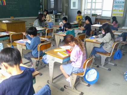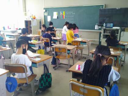 素敵なオリジナルの旗を描いていました。丁寧に色を塗っている目はとても真剣です。一人ひとり模様が違ってカラフルです。
