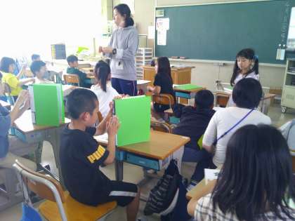 先生の話をよく聞いて、自分たちで音楽ファイル作りをしています。自分のものは自分で用意する。大事なことですね。