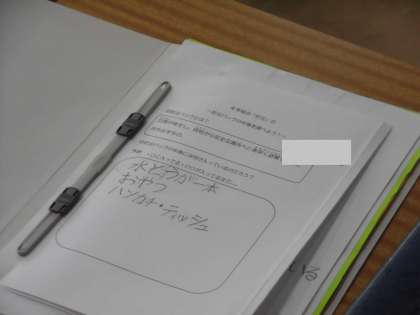 1組は防災グッズで必要なものを書きだしています。