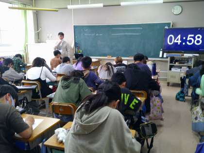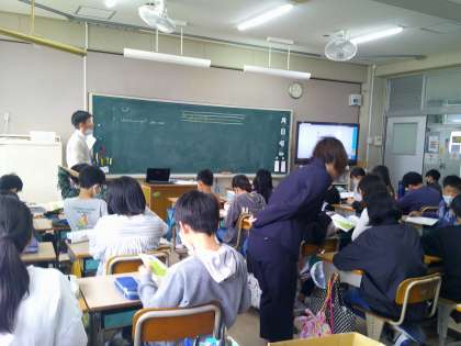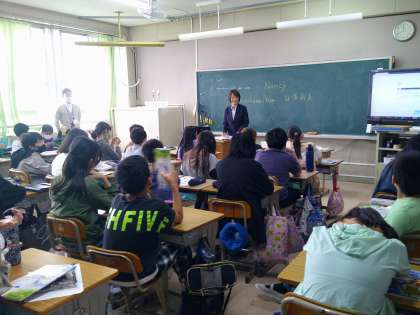 今日から外国語の先生が来てくれました。自己紹介の英語でドキッとした人もいたかもしれませんが、そのあとの日本語で安心した顔の人がたくさんいましたね。今日まで教頭先生が教えてくれていました。締めくくりに書き取りテストをみんな頑張っていました。