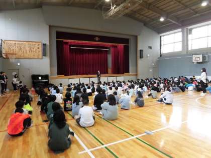生徒指導の先生から「時間を守る」「学校外での遊び方」についてのお話がありました。