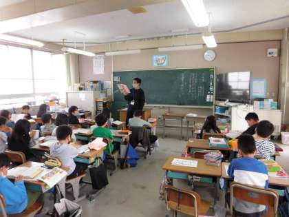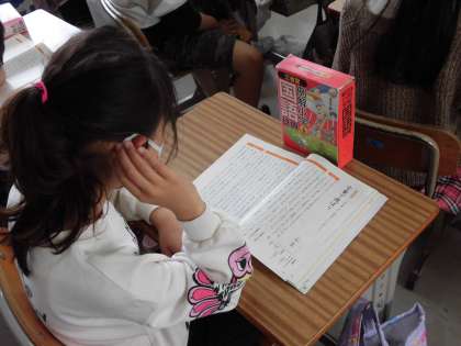 国語の時間で「言葉で遊ぼう」の勉強をしています。
