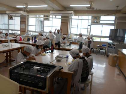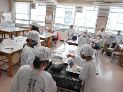 家庭科室で調理実習をしていました。今日はじゃがいもをゆでて調理しました。グループで協力し、調理や盛り付けに取り組んでいました。