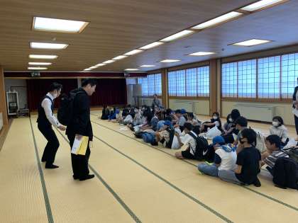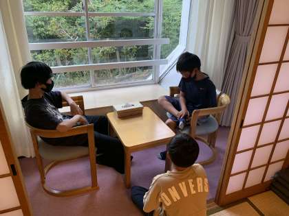 旅館に到着しました。少しくつろいだら、入浴し、お食事です。