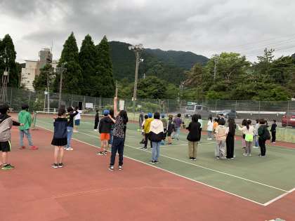 おはようございます。曇り空ですが、日光を浴びて体操をします。