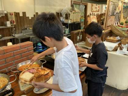目移りするほどの、沢山の種類の食べ物で、大満足な様子です。