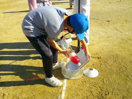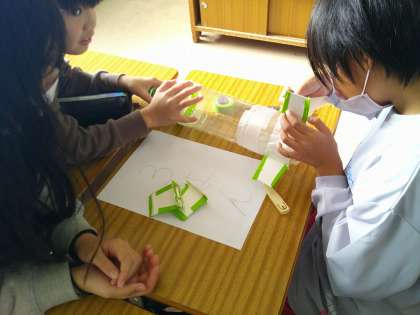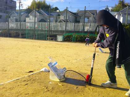 空気と水を閉じ込めて、縮んだ空気が元に戻ろうとする力を使います。