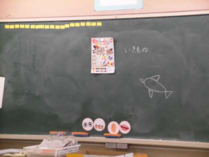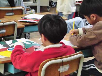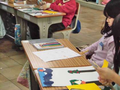 色のついた紙を切って、いろんな生きものを完成させていました。
