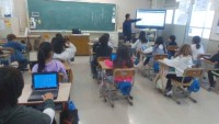 3年生の算数の授業です。問題文を読んで、どのような計算式で答えが求められるかをみんなで考えていました。