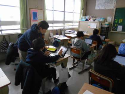 昨日行った校外学習について、タブレットを使って作文を書いていました。