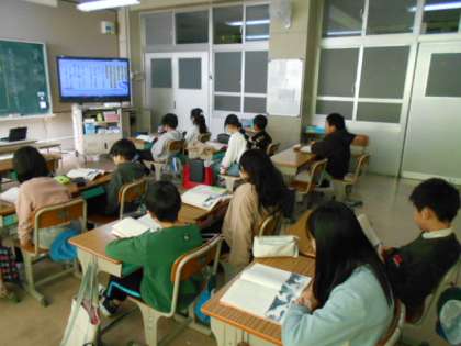 新しい単元、初雪のふる日の範読を静かに聞いていました。