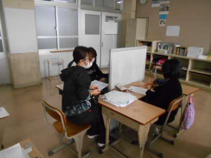 プリントは算数の計算、タブレットは国語の文章を打つ作業をしていました。