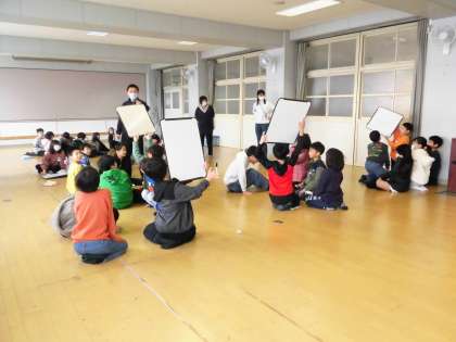 クイズを出しグループで考えて正解すると、みんなで喜んでいました。3年生とどんぐり学級の児童が一緒に考えている姿が微笑ましかったです。