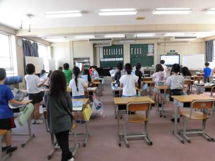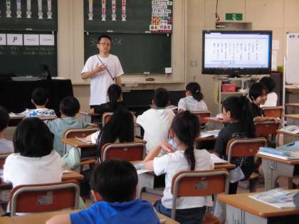 9月9日 2年 音楽 公開日 2024/09/10 更新日 2024/09/10 2年 2年生の2学期の音楽は「みんなで合奏しよう」をテーマに、音楽室で学年合同音楽にも取り組んでいくことになりました。 今日はその第1回目です! 1組・2組交互にリズム打ちをしたり、鍵盤ハーモニカを教えあったり、歌を歌ったりしました。