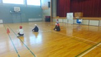 「ころがしバレーボール」です。転がしたボールを腕で打って相手の陣地に返します。な...
