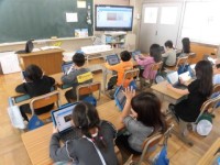 2年生が,タブレットを使って勉強をしていました。野菜の苗を写真にとって,気づいた...