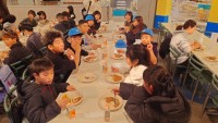 たくさん歩いたあとの豪華な食事!みんな自然と笑顔があふれます。