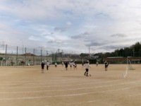 サッカーの様子です。まずは基本形の蹴る・止めるを。そして,試合形式でパス&ラン。...