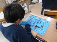 2クラスとも総合の学習で学んで地域のよさ,すてきなところを2月の参観に向けて模造...