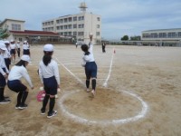 1年生と一緒にソフトボール投げの記録をとりました。やっぱりさすが2年生。投げるフ...