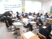 2組は家庭科でより良い生活にするためにプリントで自分の考えを整理して、全体交流をしてました。
