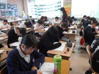 1組では家庭科のまとめの学習をしています。Kahoot!を使って、先生が作った問題を考えています。これまで学んだ知識を確かめた後に、テストに挑みます!よく問題を読んで答えてくださいね!!