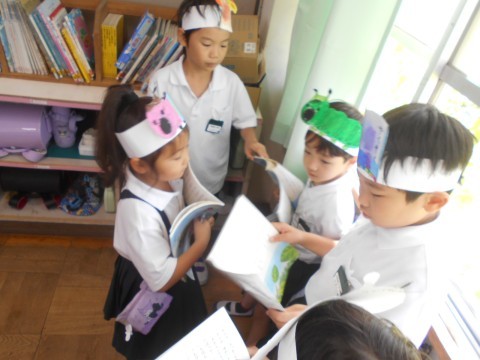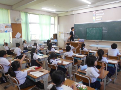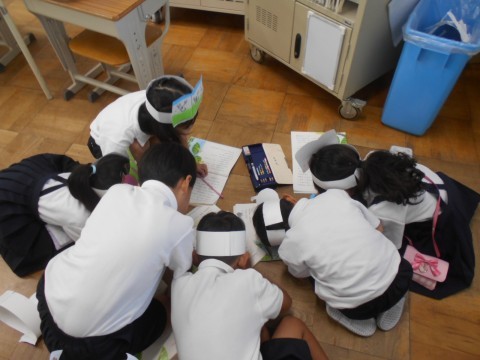2組は国語で「やくそく」のお話を、グループに分かれて役割に分かれて読む練習をしています。本番が楽しみです。