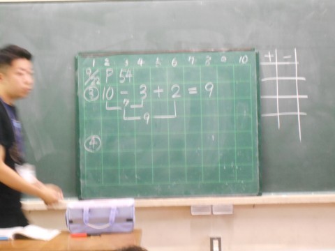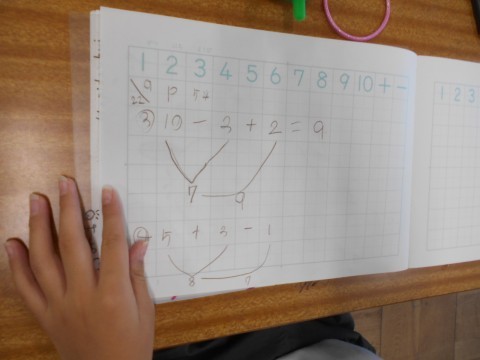 1組は算数で「+」『-』が入ったいろいろな計算の学習を進めていました。