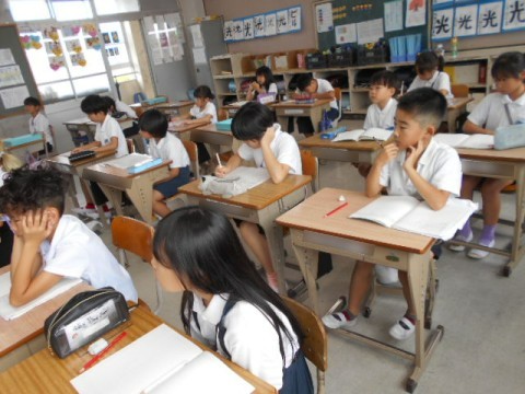 2組では,算数科「10倍した数10でわった数」の学習をしています。25を10倍すると,250になる理由を上手に話していました。では,250を10倍すると・・・どうなるか自分で考えていました。友だちの意見を活かして考えられたかな?