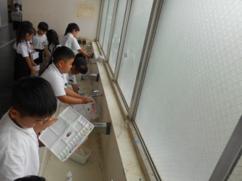 1組は絵の具道具の使い方,そして片付け方を丁寧に行っていました。もう一人でも大丈夫です!