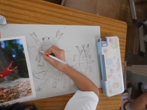 2組は次の絵のテーマを練習していました。次はザリガニを入れた絵になります。どんな楽しそうな絵になるのか,今から楽しみです!