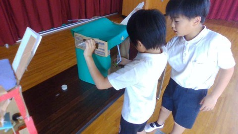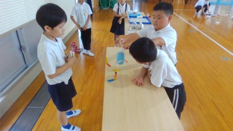 2年生活科「おもちゃランド」の学習で、1年生の喜ぶ顔をイメージしておもちゃを作り、遊び方も工夫して挑んだ本番!