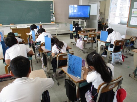 2組は漢字の小テストでした。シーンと全員が集中して取り組んでいました。