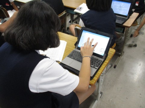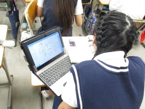 タブレットをつかい,教科書を読み取りながらまとめていました。