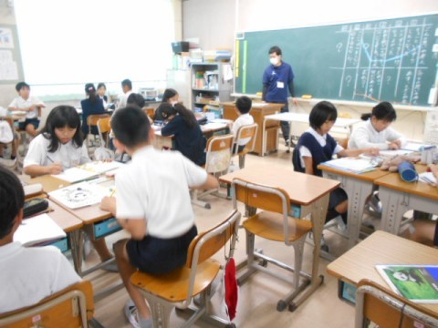 2組では,国語科「ごんぎつね」の物語の読み取りをしています。心情を表す叙述を探して,表に抜き出しています。会話や行動から気持ちの分かる文章から,心情曲線を書いて気持ちの変化をみていきます。