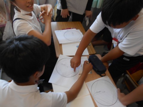 どうやったら円の面積が求められるか。みんないろんな方法を探っていました。