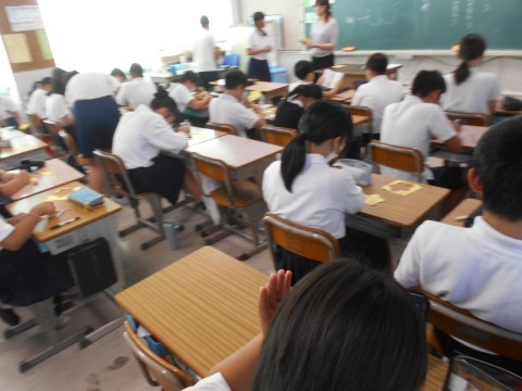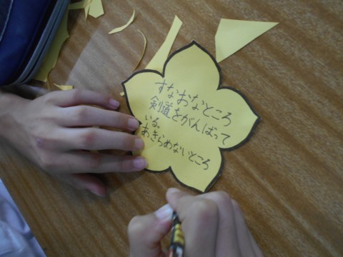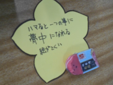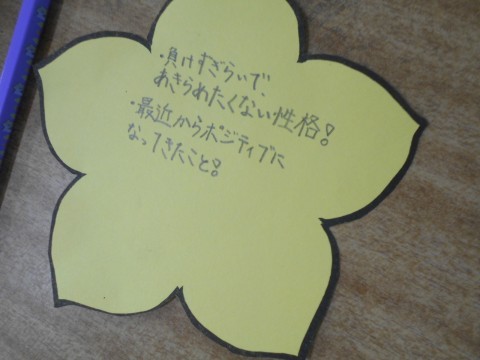 1組は自分のいいところを紙に書いていました。自分のよさを認識できることはとても大切なことです。階段の掲示板に貼りますので,来校の際に子どもたちの素敵なところをご覧ください♪