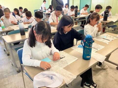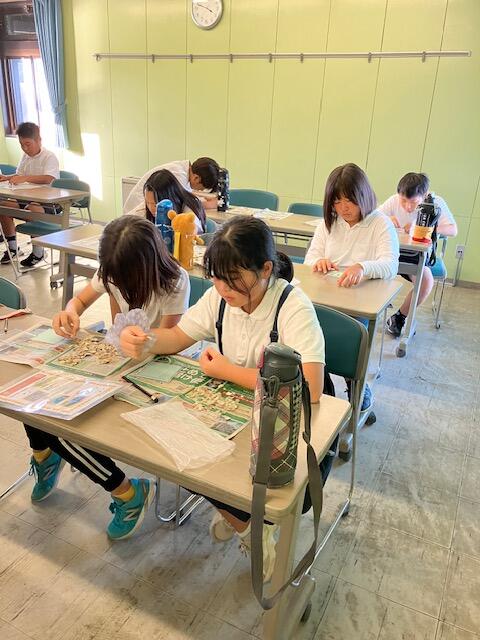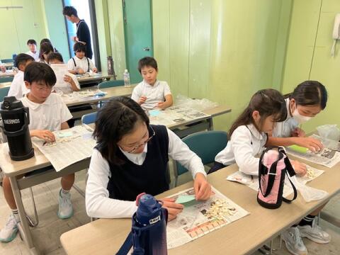 午前中の活動で集めた貝殻を使ってシェルメモリーの活動を始めます。