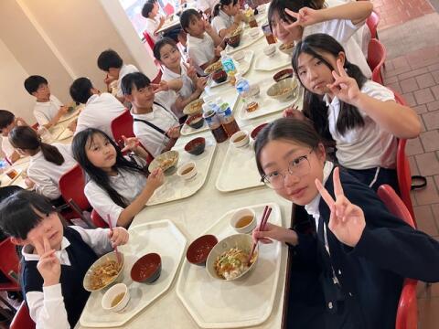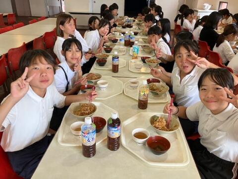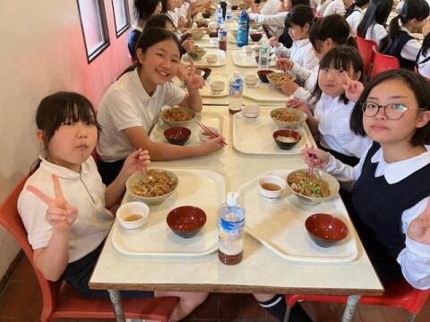 午前中の活動が終わり、お昼ご飯の時間です。今日のメニューは豚丼です♪