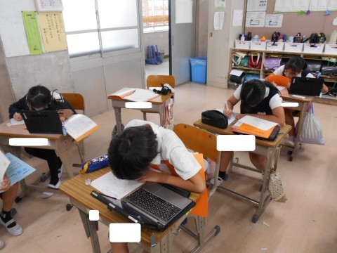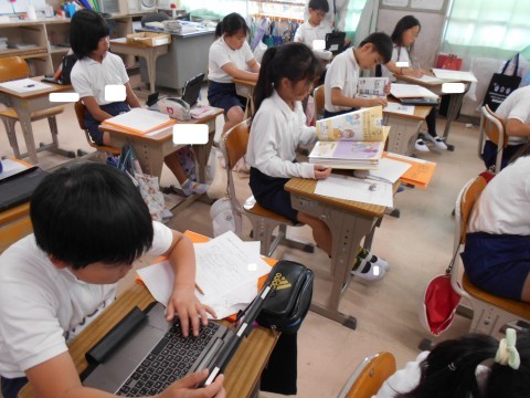 1組では,総合的な学習の時間で「防災」について調べていました。地震や大雨など,自分で決めたテーマについて調べ,わかったことやさらに調べたいことをまとめていました。