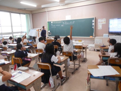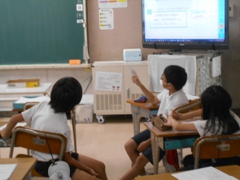 1組は算数で四捨五入のやり方を考えていました。概数は勉強済みなので,実際にどのくらいに注目して考えればいいのかを話し合っていました。