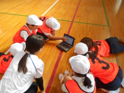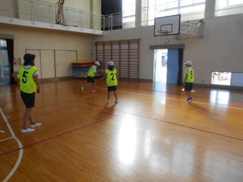 1組は体育でバスケットボールの作戦を練っていました。みんながボールに集まるだけでは勝てません。ポジションや動き方を決めてチームとして勝利をめざします。